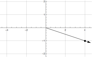 Find all six trigonometric function values of the angle \(\theta\) in standard position whose terminal ray passes through the point \((x,y) = (4,-1)\text{.}\) See figure below.