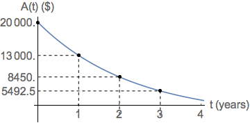So as we decrease the input by one, the output is halved. This is consistent with the doubling observed above. Plotting these points and filling in the gaps we obtain its graph.